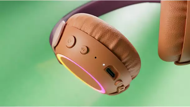 Kolorowe diody LED w nausznikach łączą się z wielobarwną konstrukcją tych słuchawek, aby wyróżnić je na wszystkie właściwe sposoby. Diody LED można ustawić tak, aby świeciły w różnych kolorach: świetne rozwiązanie dla dzieci, które chcą wyrazić swoje własne poczucie stylu.