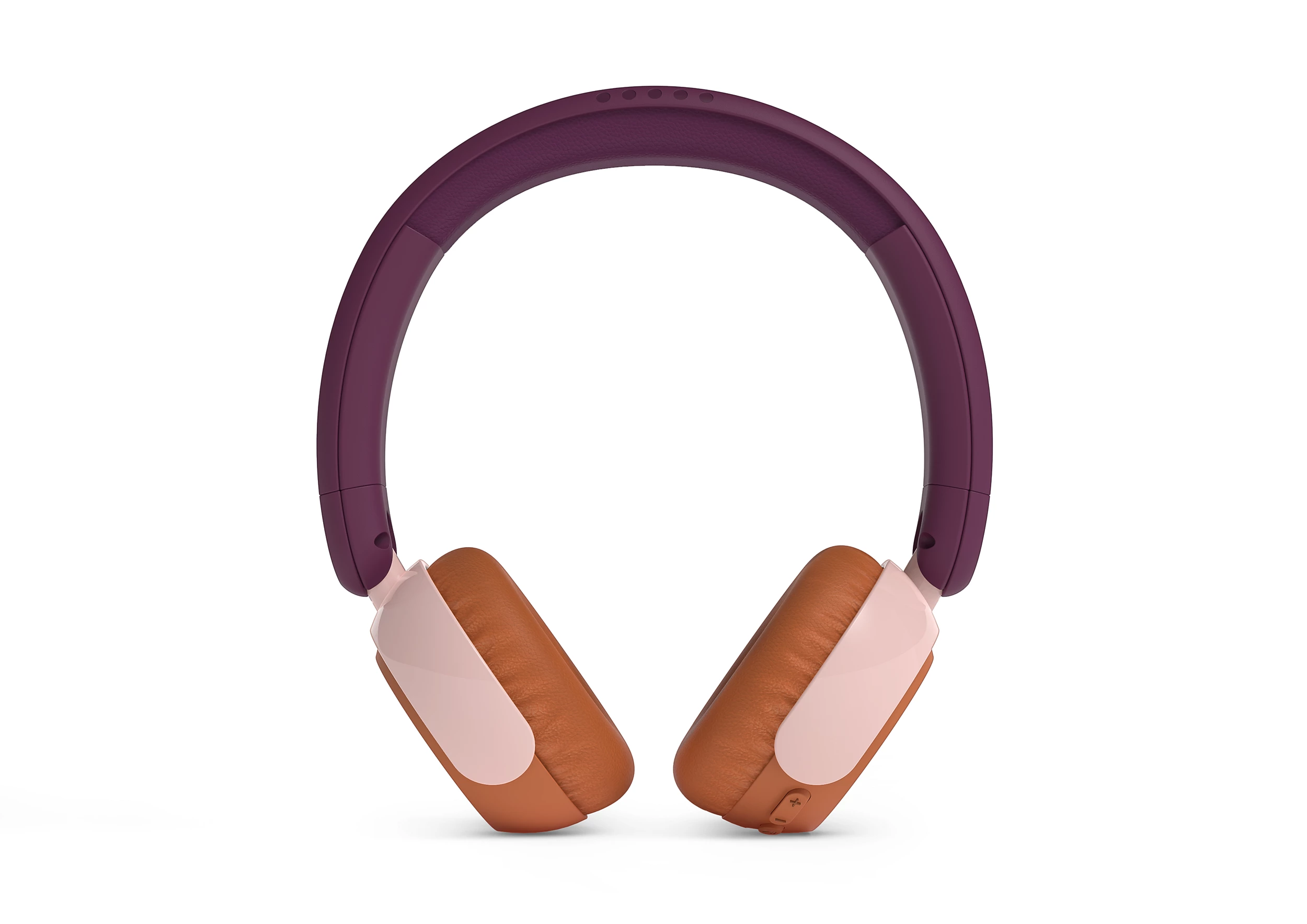 Duże okrągłe przyciski sterujące na spodzie nauszników ułatwiają dzieciom korzystanie z tych słuchawek, a mniejsze nauszniki z miękkimi poduszkami sprawiają, że są one wygodne w noszeniu. Wyściełany pałąk łatwo się reguluje, zapewniając idealne dopasowanie, a kropki z tyłu pomagają dzieciom zorientować się, w którą stronę należy założyć słuchawki.