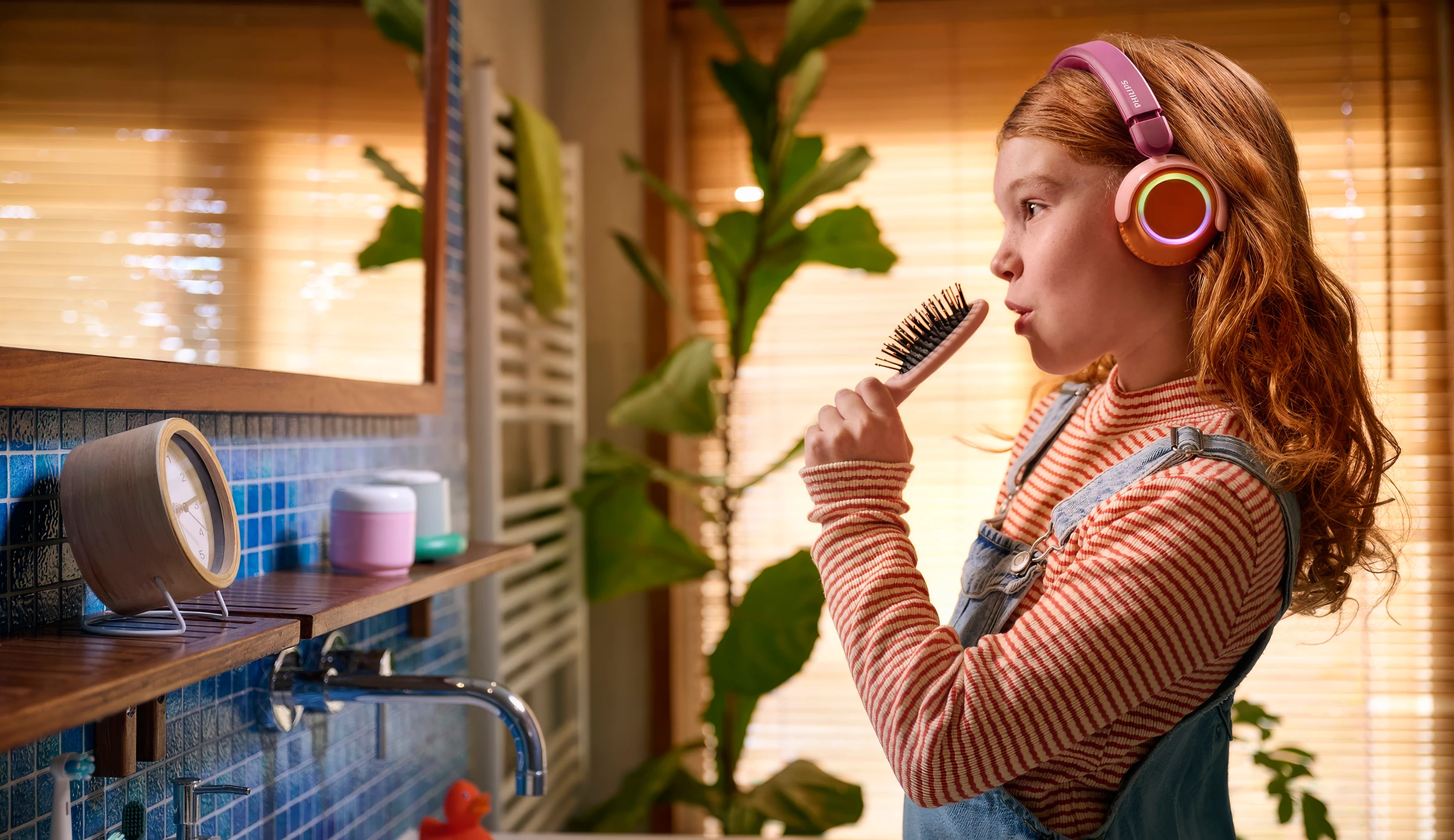 Dzięki kolorowym diodom LED na nausznikach i rozrywkowej funkcji bezprzewodowego udostępniania dźwięku, te słuchawki są stworzone z myślą o dzieciach. Ich głośność jest dostosowana do młodych uszu, a specjalny tryb podróżny pozwala dzieciom bezpiecznie słuchać także w bardziej hałaśliwym otoczeniu.