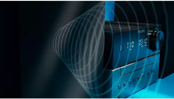 Głośniki półkowe o mocy 20 W (RMS), 3-calowe głośniki niskotonowe i porty bass-reflex zapewniają wyraźny, czysty dźwięk stereo z głębokimi basami. Cyfrowe sterowanie dźwiękiem pozwala wybierać spośród zaprogramowanych stylów dźwięku — od muzyki po słuchowiska radiowe — zawsze uzyskasz najlepszy dźwięk do tego, czego słuchasz.