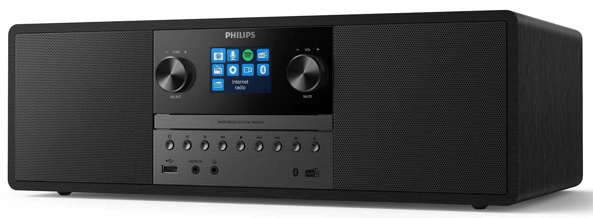 Ta kompaktowa mikrowieża typu „wszystko w jednym” z radiem internetowym, funkcją Spotify Connect, Bluetooth i odtwarzaczem płyt CD umożliwia odtwarzanie każdej muzyki. Można także podłączyć inne źródła za pośrednictwem wejścia audio lub USB. Ciesz się bogatszym brzmieniem z mikrowieży, która zmieści się w niemal każdym pomieszczeniu.