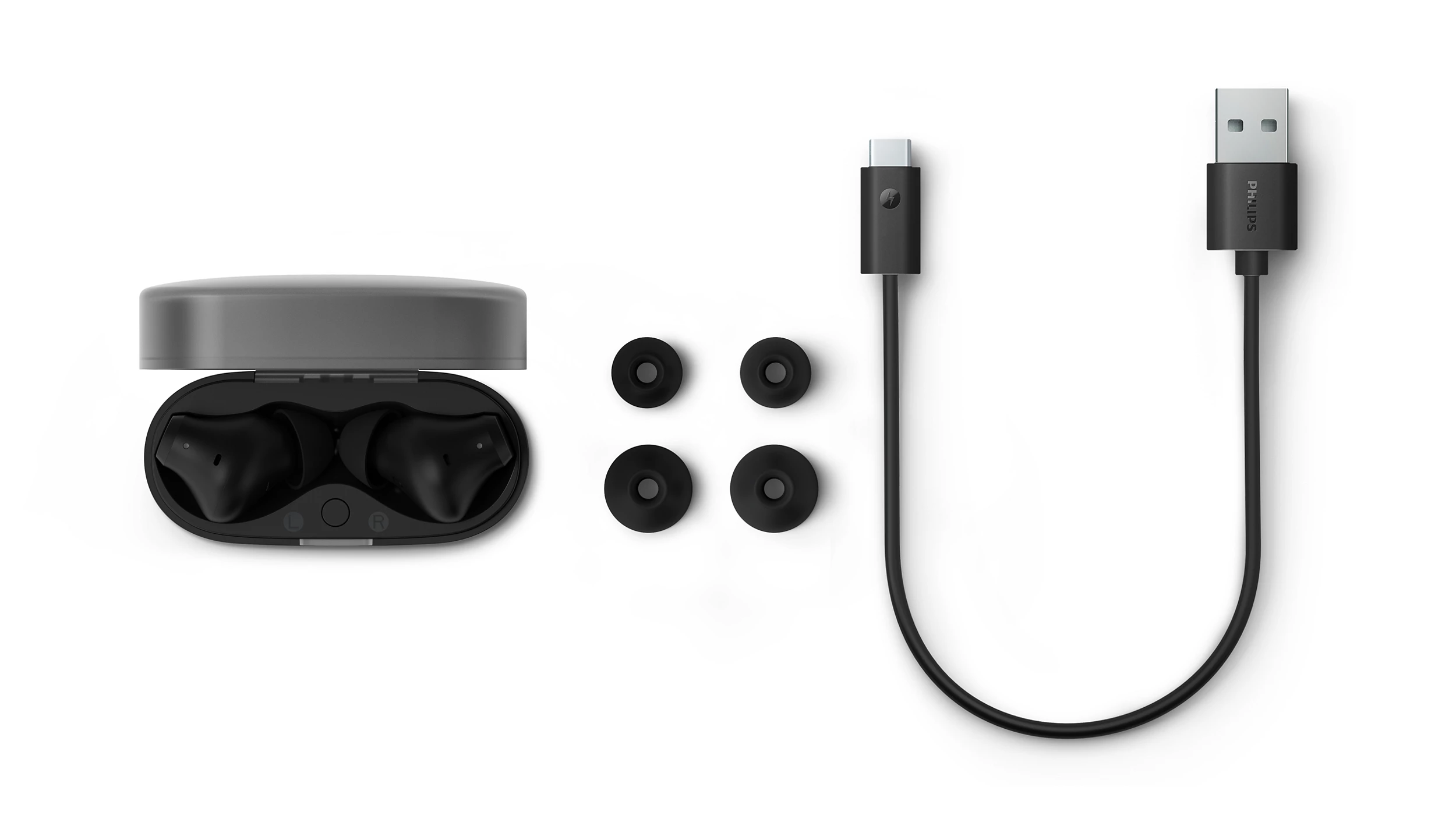 Końcówki douszne spoczywają delikatnie, ale bezpiecznie w przewodzie słuchowym, a wymienne silikonowe osłony końcówek dousznych pozwalają znaleźć idealne dopasowanie. Dotykowe elementy sterujące na wkładkach dousznych zapewniają prostotę i można dostosować sposób ich konfiguracji za pomocą aplikacji towarzyszącej Philips Headphones.