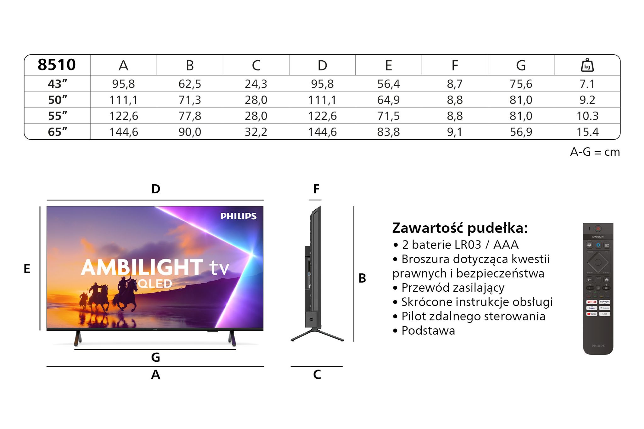 Philips Telewizor Ambilight 4K QLED 65" 65PUS8510